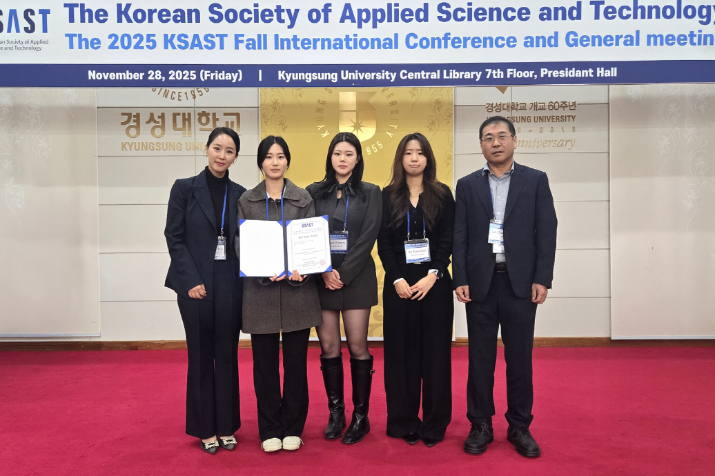 또한, 건양대학교 글로벌의료뷰티학과(학과장 유선희)는 지난 11월 28일 부산에서 열린 KSAST(한국과학기술학회) 학술대회에서 Best Paper Award(우수논문상)를 수상했다. 유선희 지도교수와 3학년 피승아, 최소윤, 변설아 학생이 참여한 이번 연구는 건양대학교 RISE 사업단과 Lab-corps 프로젝트의 지원 아래 수행되었다. 충남 지역의 생태계 교란종인 양미역취를 기능성 화장품 소재로 활용하는 가능성을 과학적으로 입증하며 주목을 받았다. 이는 지역 문제 해결을 넘어, 지역 화장품 기업 오리드해와의 산학협력을 통해 학생들의 실무 경험 확대와 지역 기업 경쟁력 강화에도 기여하는 혁신적인 사례로 평가받았다.